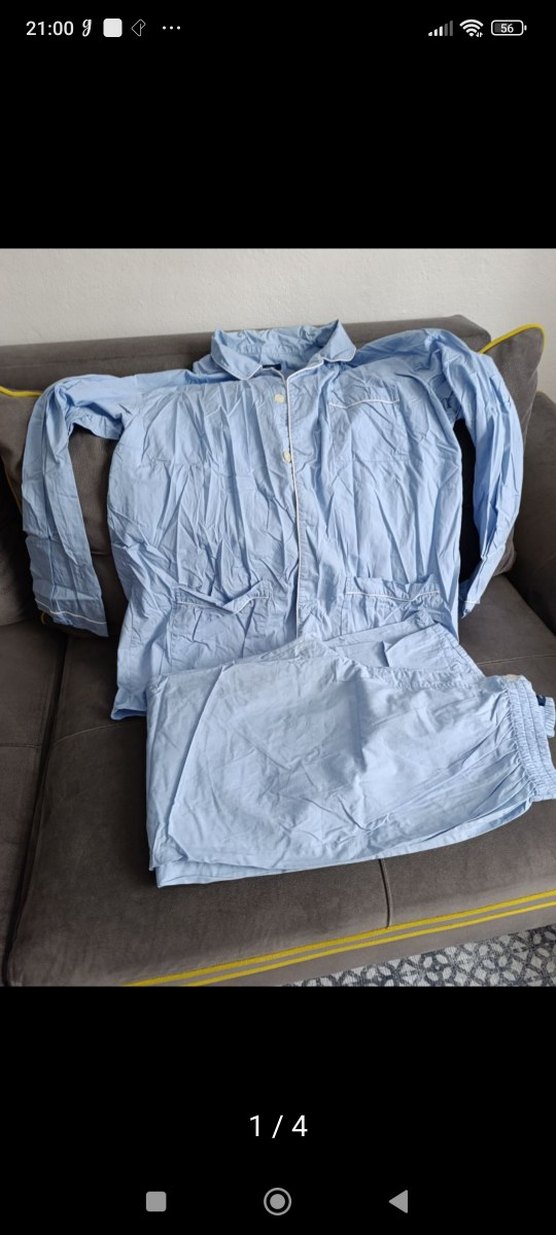 Düğmeli, yakalı ve uzun kollu, bol kesim erkek pijama takımı. Pastel mavi renkte, sade ve rahat tarzda.
