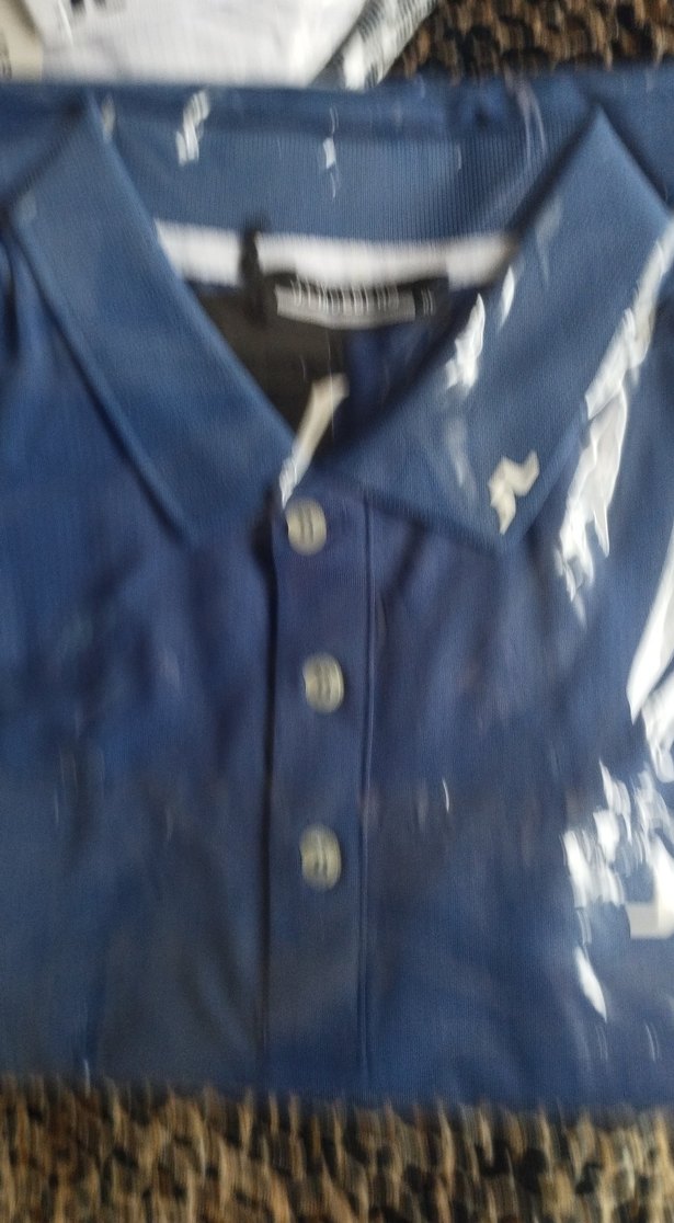 Parlak mavi renkte, düğmeli ve yakalı, sentetik kumaştan üretilmiş, kısa kollu ve normal boyda, dar kesim erkek polo tişört.