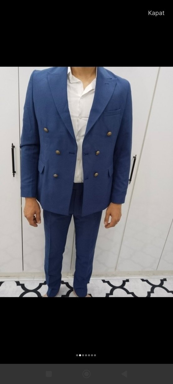 Düğmeli Mavi Erkek Takım Elbise