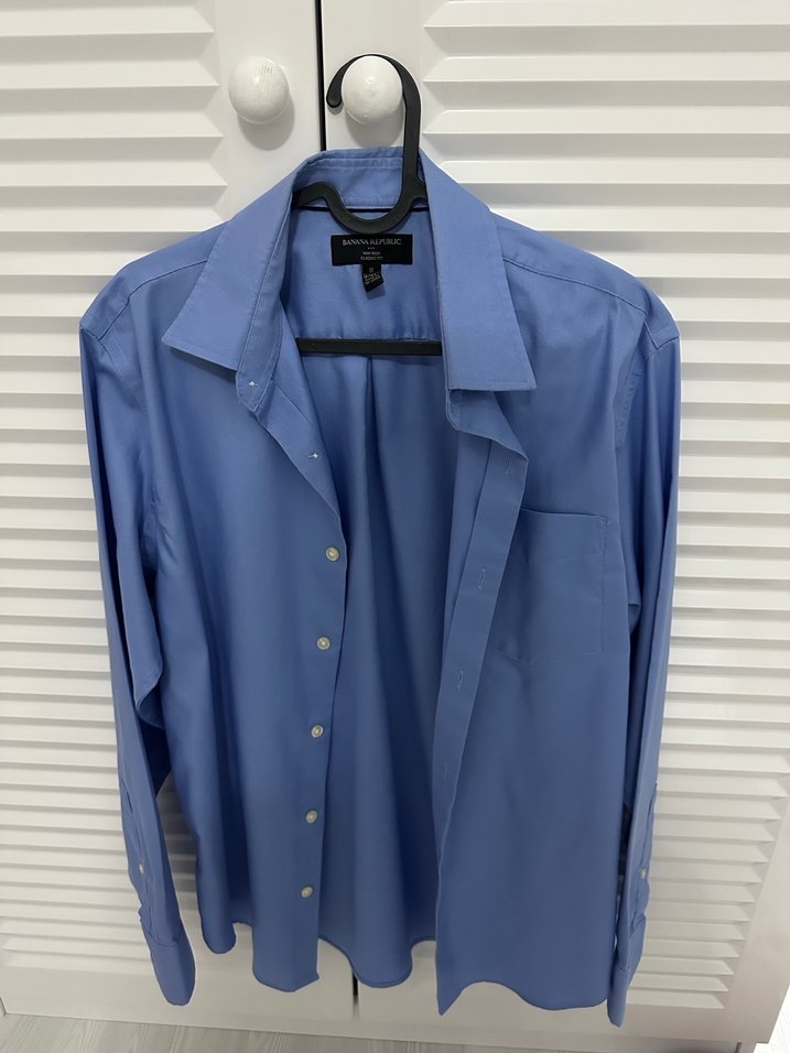 Düğmeli Mavi Erkek Uzun Kollu Gömlek