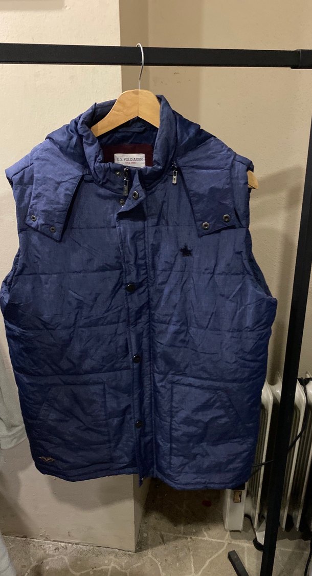 Düğmeli, kolsuz erkek yelek, kesik yaka ve parlak mavi renkte. Rahat kesim, yumuşak ve sıcak kumaştan, günlük kullanıma uygun midi boyda.