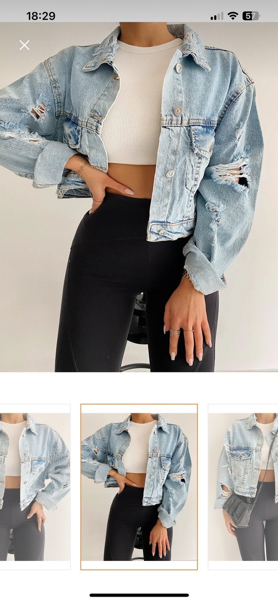 Mavi denimden üretilmiş, düğmeli, notched lapel yaka ve bol kesimli kadın ceket. Günlük kullanıma uygun, sokak tarzı ve sade tasarıma sahip.