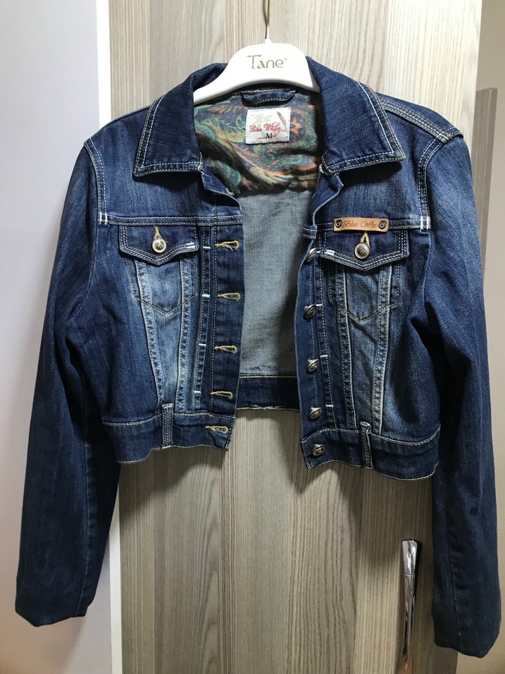Düğmeli ve kesim oturan mavi denim ceket, yaka kısmında kesimli detaylar bulunur. Uzun kollu ve bağlama desenlidir. Günlük kullanıma uygun parlak görünümlüdür.
