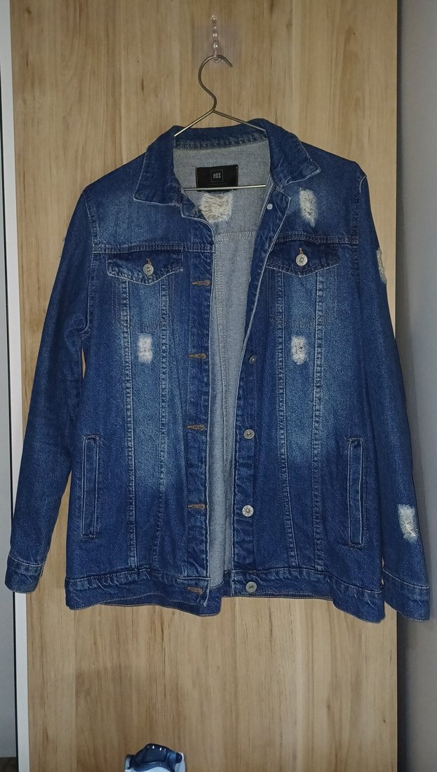 Düğmeli, uzun kollu, mavi renkli, normal midi boy, bol kesim denim ceket. Notched lapel yaka ve sade tasarıma sahiptir.