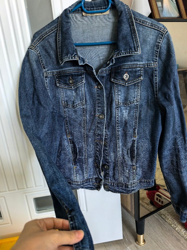 Düğmeli ve yaka detaylı, uzun kollu, normal boyda mavi kadın denim cekettir. Günlük ve rahat sokak tarzı için uygundur.