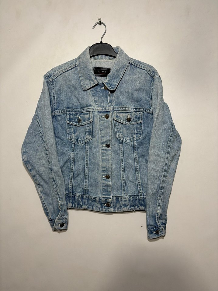 Bu bol kesim kadın denim ceket, uzun kollu ve kesimli yakaya sahiptir. Düğmeli ön kısmı ve mavi-gri rengiyle günlük kullanıma uygundur.