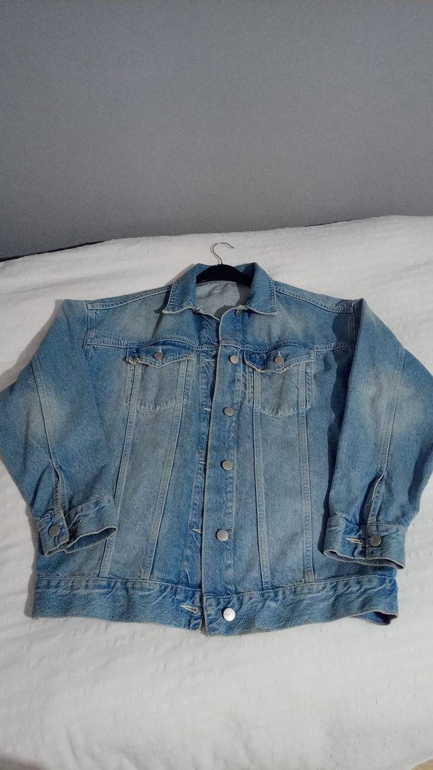 Düğmeli, uzun kollu, normal boyda, bol kesim mavi kadın denim ceket. Notch yaka ve desensiz yapısıyla günlük kullanıma uygundur.