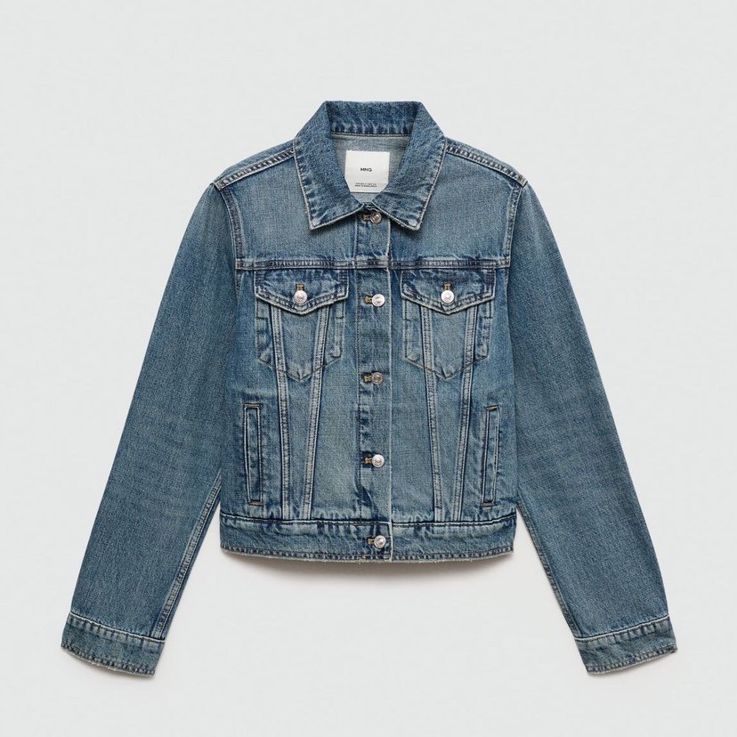Düğmeli, uzun kollu, normal kesim mavi denim ceket. Notlu yaka tasarımı ve sokak stiliyle günlük kullanıma uygundur.