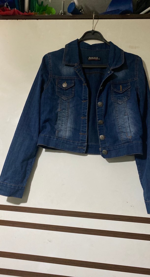 Düğmeli, uzun kollu, parlak mavi renkte, normal boyda, kesimli kadın denim ceket. Notch yaka tasarıma sahiptir, günlük kullanıma uygundur.