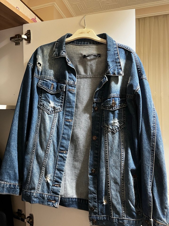 Mavi renkli kadın denim ceket, düğmeli ve uzun kolludur. Salaş kesimi ve çentikli yaka detayıyla gündelik sokak stiline uygundur. Normal midi uzunluktadır ve desensizdir.