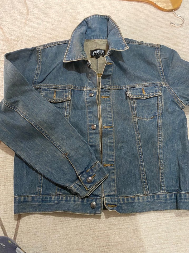 Parlak mavi renkte, düğmeli ve yakalı kadın denim ceketi. Uzun kollu, bol kesim, günlük rahat stil için uygun.