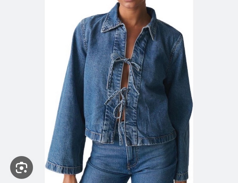 Düğmeli, notched lapel yaka ve uzun kollu, bol kesim kadın denim ceket. Normal midi boyda, gri tonlu mavi renkte, günlük sokak stili için uygundur.