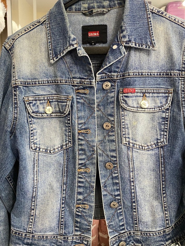 Düğmeli ve fitted kesim kadın denim ceket, notched lapel yaka ve uzun kolludur. Parlak mavi renkte, günlük sokak stiline uygundur.