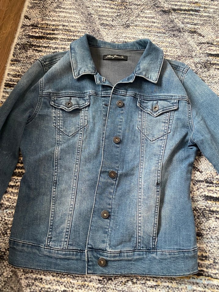 Mavi denim kumaştan düğmeli, uzun kollu ve kesik yakalı kadın ceketi. Rahat kesimi ve normal boyuyla günlük sokak stiline uygundur.