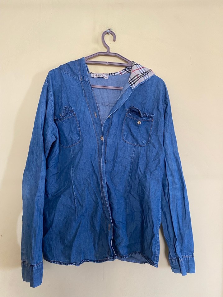 Bol kesim, uzun kollu mavi denim gömlek. Düğmeli, yakalı ve cepli, parlak görünümlü, günlük kullanıma uygun. 2 ürün birlikte kargolanacaktır