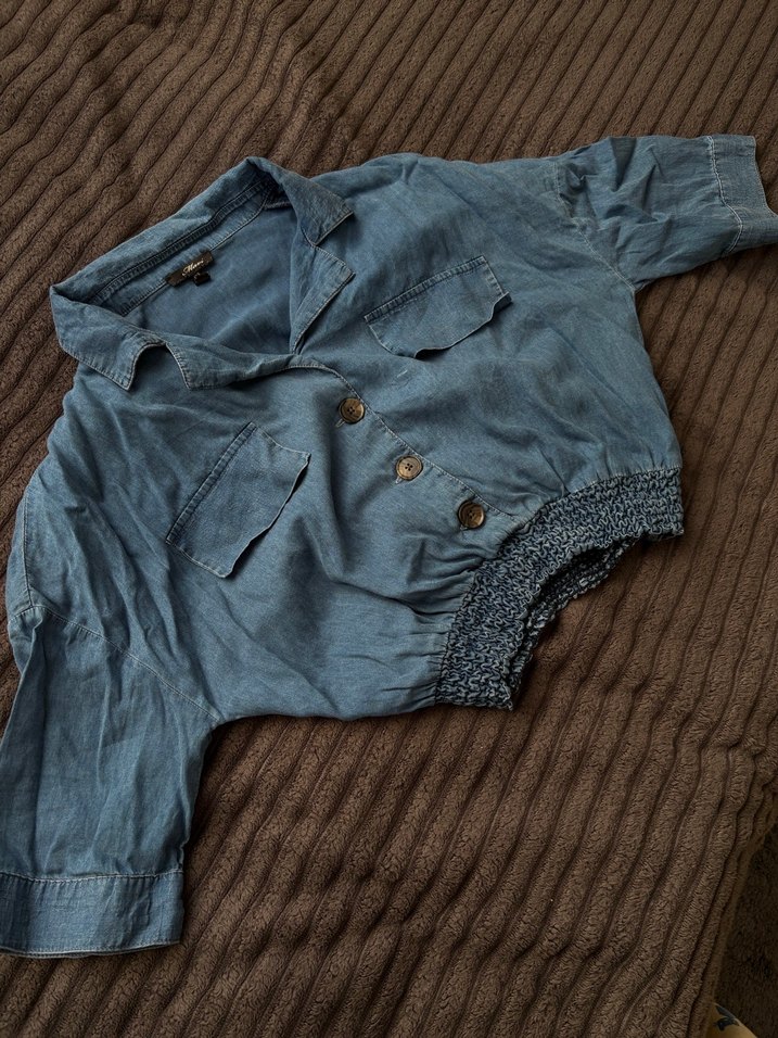 Düğmeli Mavi Kadın Denim Gömlek