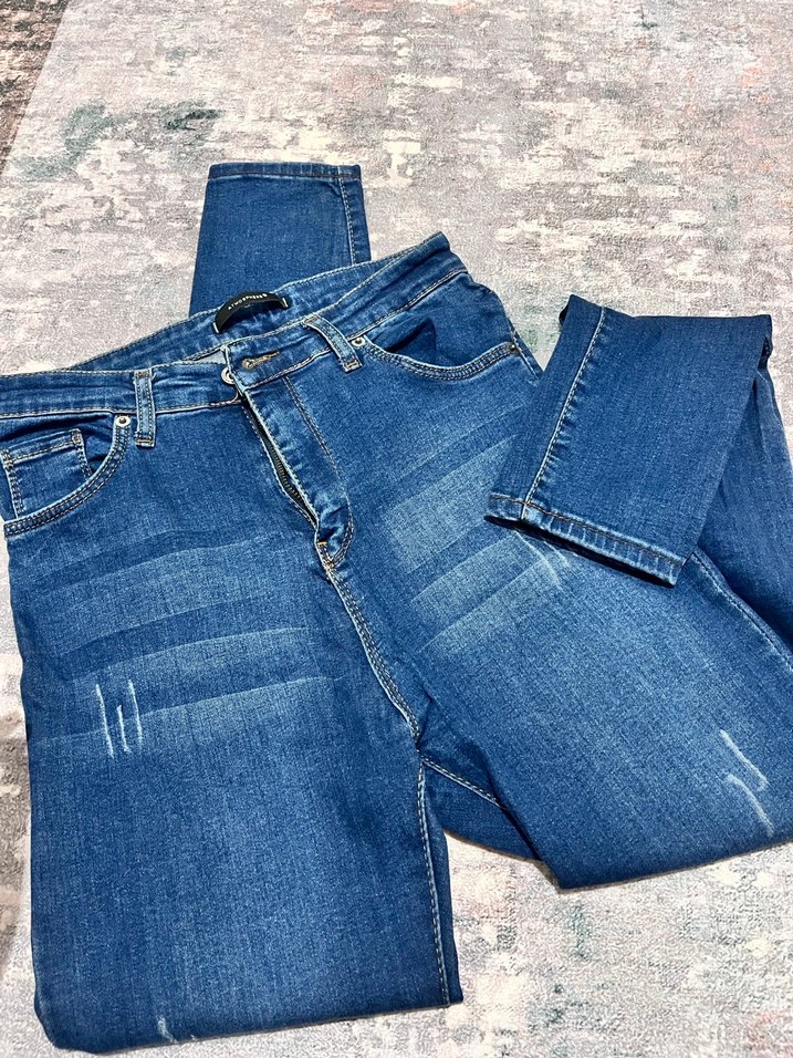Düğmeli Mavi Kadın Denim kot pantolon