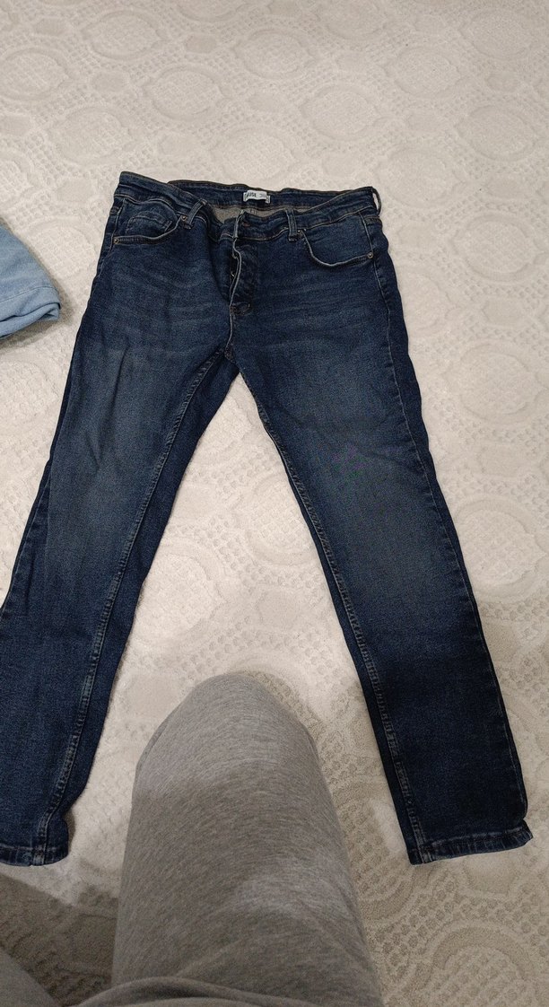 Düğmeli, mavi renkli kadın denim pantolon, normal midi boyda ve regular fit. Sade tasarımı günlük ve sokak stiline uygundur.