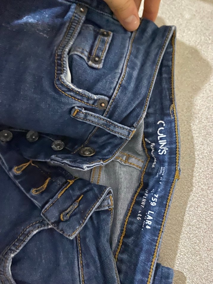 Düğmeli, baskılı detaylara sahip mavi, midi boy, dar kesim kadın denim pantolon. Günlük rahat kullanım için uygundur. Marka: Culin's.