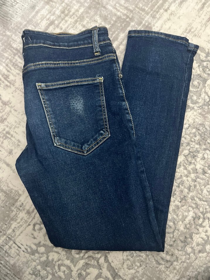Düğmeli, mavi renkli, normal midi boyda, fitted kesim kadın denim pantolon. Günlük kullanıma uygun, desensiz ve normcore tarzında. İlk düğmede sıkıntı var