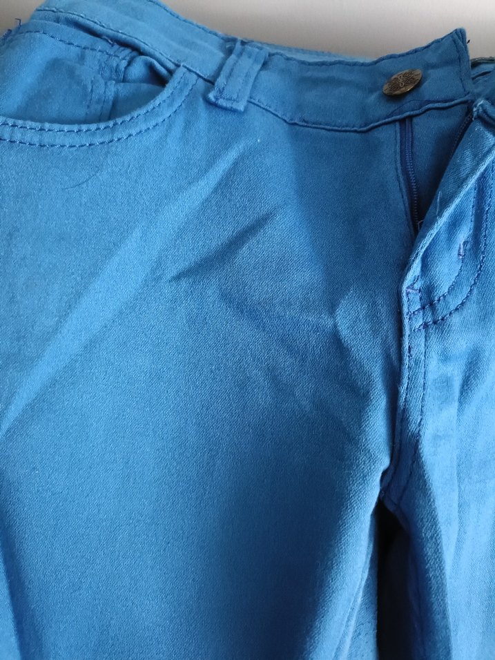 Düğmeli, normal boy midi kesim, parlak mavi renkli kadın kot pantolon, günlük sokak stili için uygun. ✨