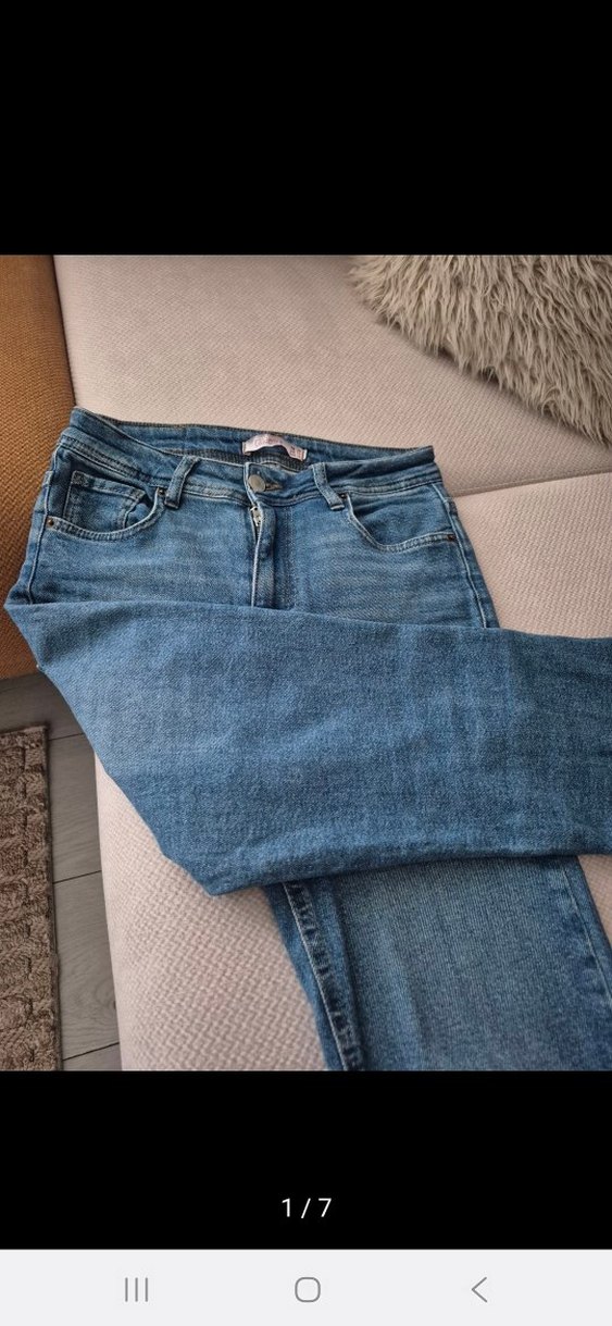 Düğmeli ve normal kesim mavi denimden yapılmış, midi boy kadın kot pantolon. Günlük kullanıma uygun, rahat bir normcore tarz sunar. tertemiz kullanılmiş ürün defosu yoktur