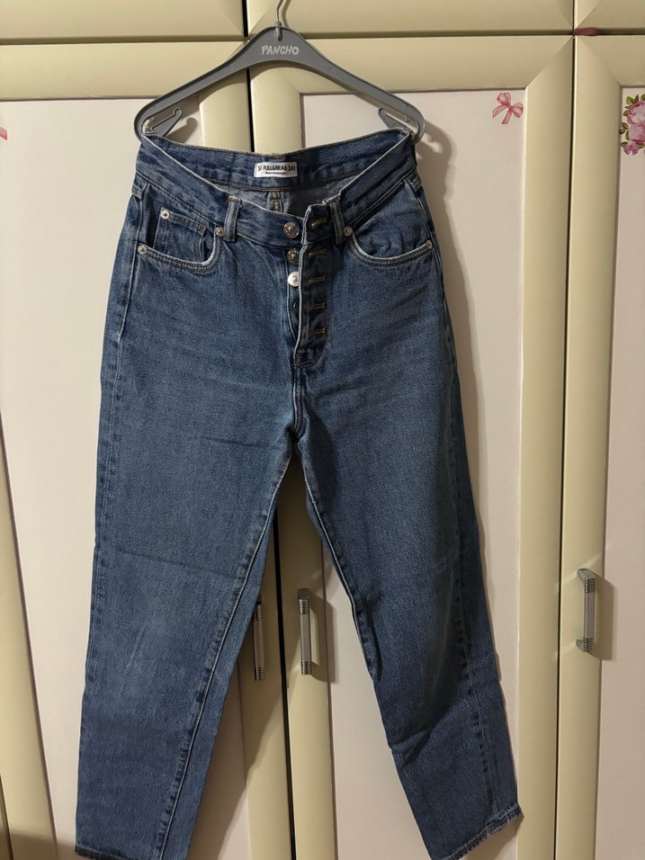 Düğmeli Mavi Kadın Denim Pantolon