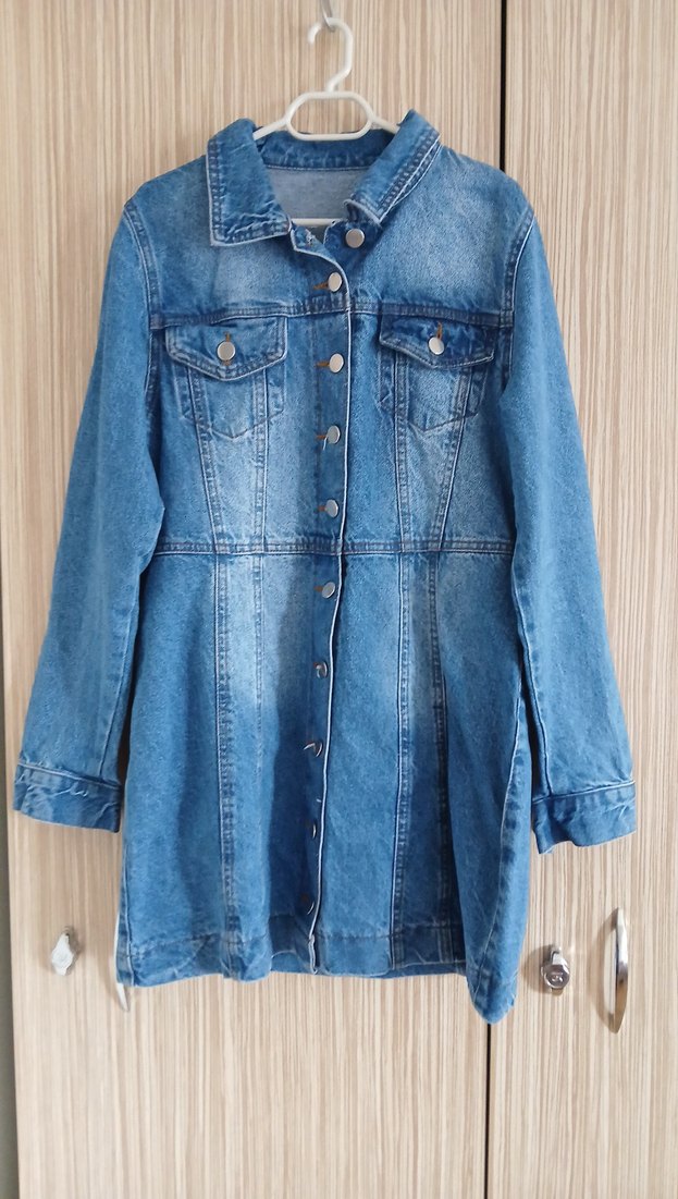 Mavi denim kumaştan yapılmış bu kadın elbisesi düğmeli, uzun kollu ve kesik yakalıdır. Rahat kesimi ve mini boylu ile günlük kullanıma uygundur. ( etek dizüstüne kadar geliyor. benim beden m ve biraz dar ve üzere oturuyor bende. Small bedene daha rahat oturur. büyük göğüslü kadınlara tavsiye etmiyorum.