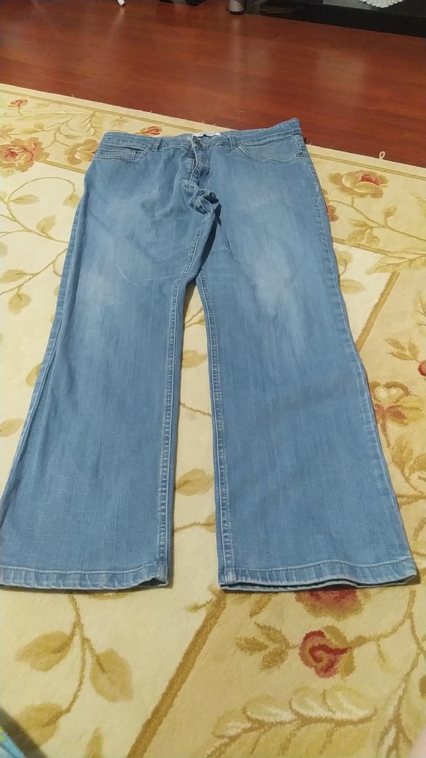 Düğmeli, geniş paça ve midi boyda parlak mavi kot pantolon, gündelik sokak stili için uygun, desen içermeyen rahat kesim. Temiz sağlam az kullanılmış.