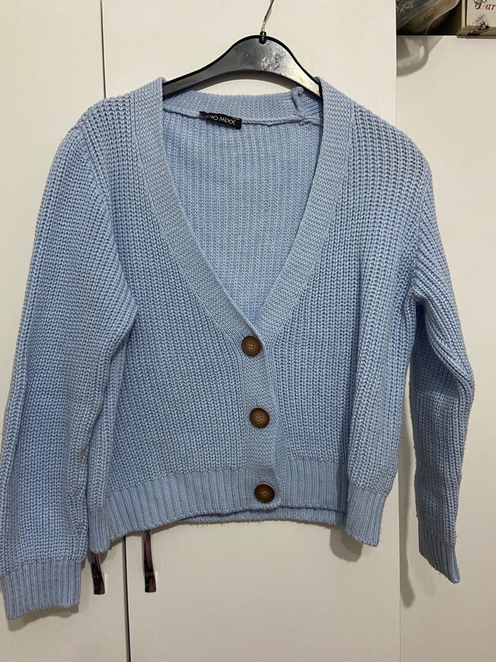 Düğmeli Mavi Kadın Hırka