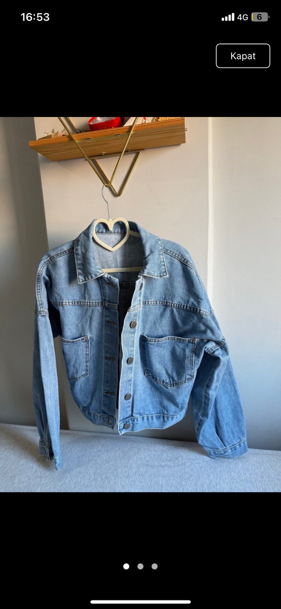 Bu pastel mavi kadın kot ceket, düğmeli kapama, uzun kollu ve kesik yaka detayına sahiptir. Gevşek kesim, midi boy ve günlük rahat kullanıma uygundur.