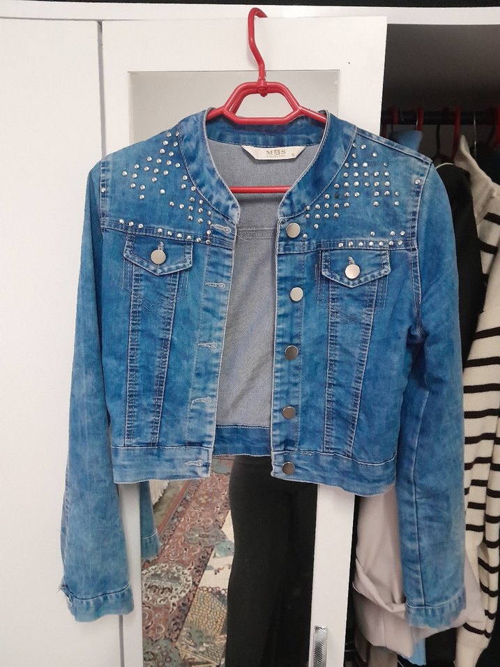 Düğmeli Mavi Kadın Kot Ceket