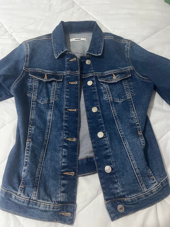 Düğmeli ve uzun kollu, fitted kesime sahip parlak mavi kot ceket. Notch yakalı, günlük kullanıma uygun trend bir parça. Bir kere bile giyilmedi