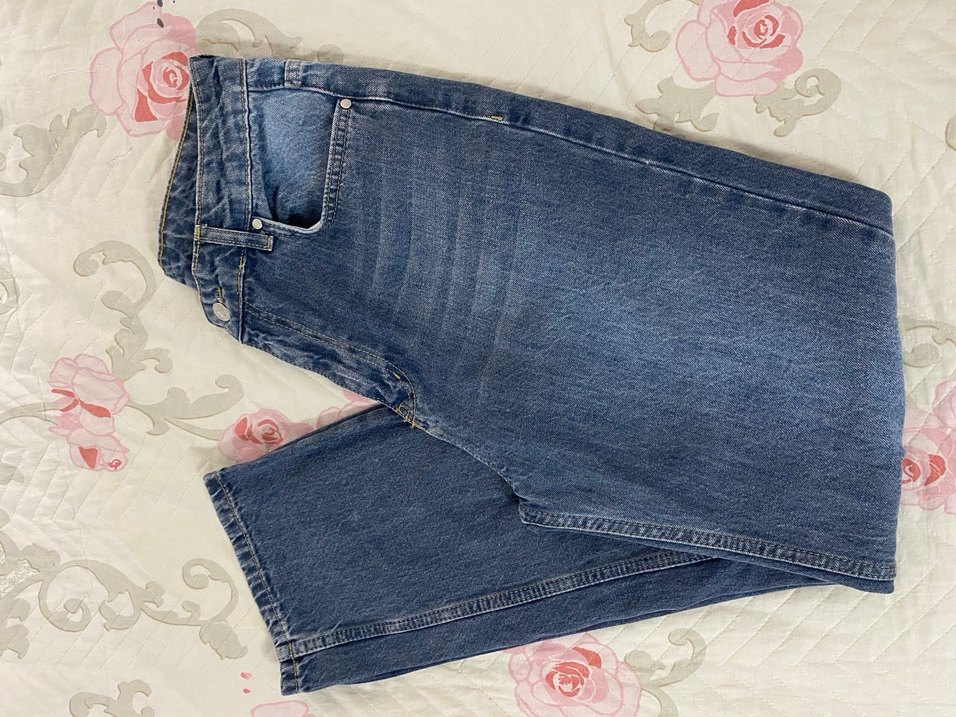 Düğmeli, normal boy midi kesim, rahat mavi kot pantolon. Günlük sokak tarzı için uygundur.