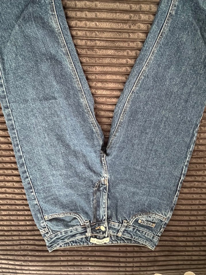 Düğmeli Mavi Kadın Kot Pantolon