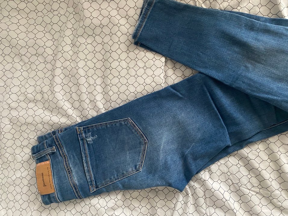 Düğmeli tasarıma sahip, normal midi boy, fitted kesim mavi kadın kot pantolon. Rahat, gündelik kullanıma uygun, cozy ve normcore tarzda.