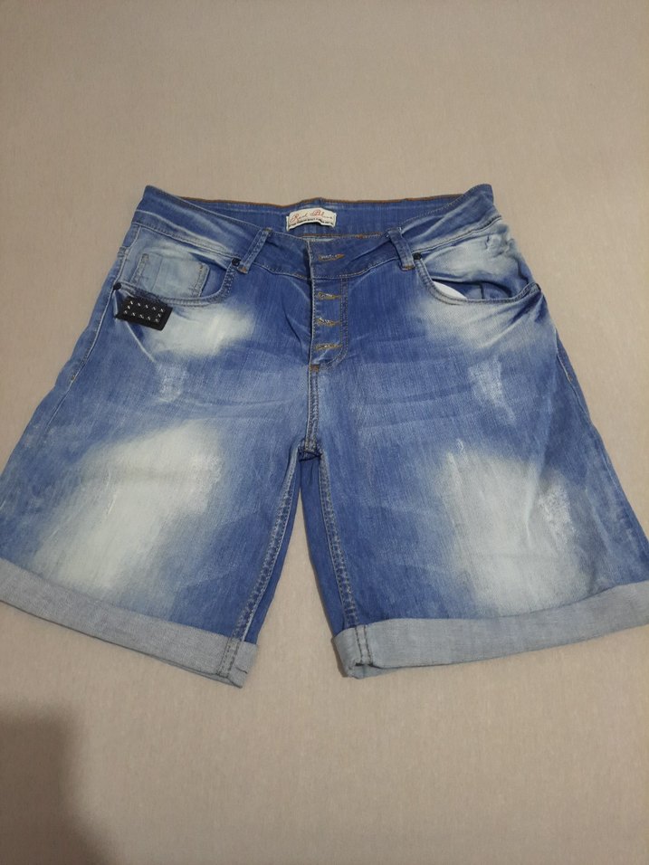 Parlak mavi renkte, düğmeli ön detaylı ve bol kesim kadın kot şort. Kısa boyda ve desen içermeyen, günlük rahat sokak stili için uygundur.