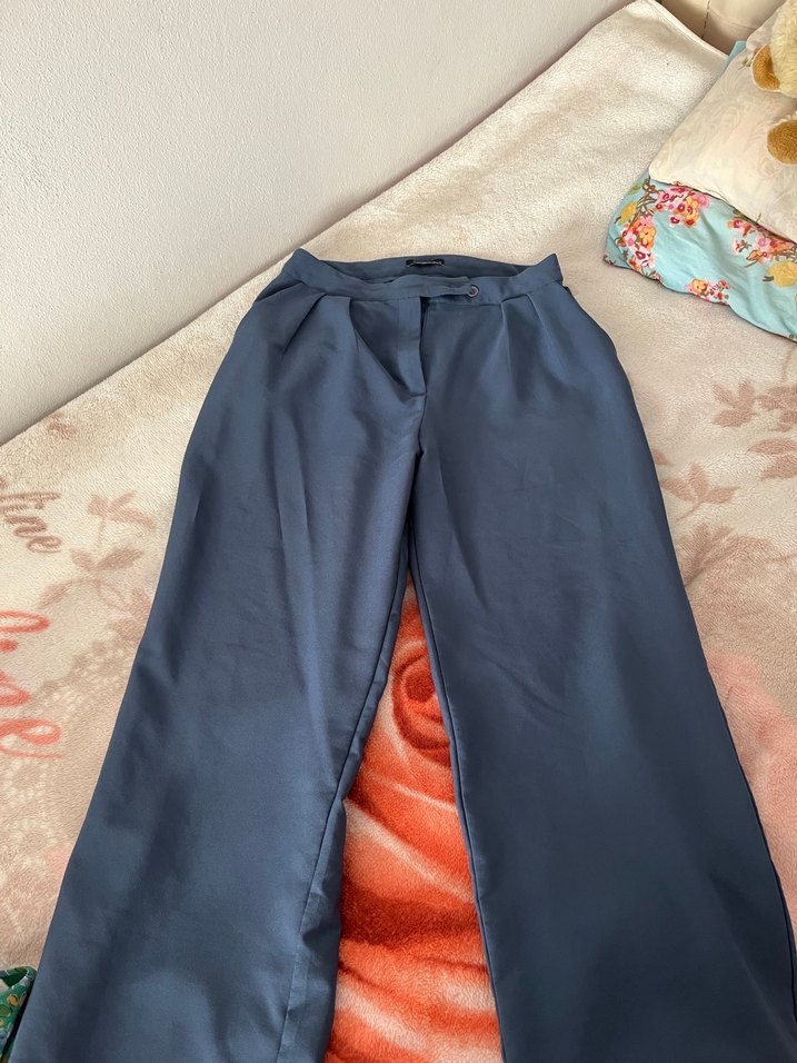 Düğmeli Mavi Kadın Kumaş Pantolon