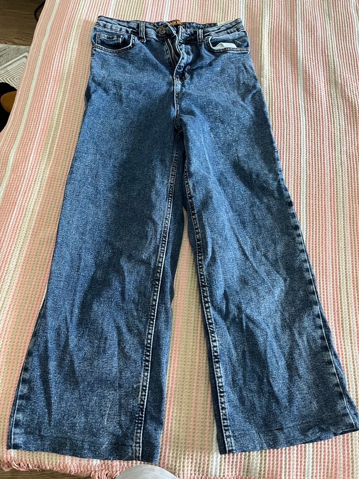 Düğmeli Mavi Kadın Midi Boy Kot Pantolon - Görsel 1