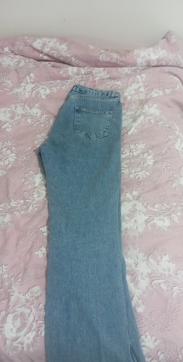 Düğmeli, mavi renkli, midi boy, bol kesim kot pantolon. Günlük rahat sokak stili için uygundur. Rahat ve konforlu tasarım.