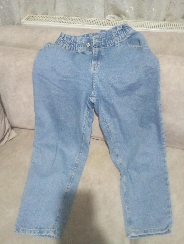 Düğmeli, pastel mavi renkte, rahat kesim midi kot pantolon. Günlük kullanıma uygun, normcore tarzda.