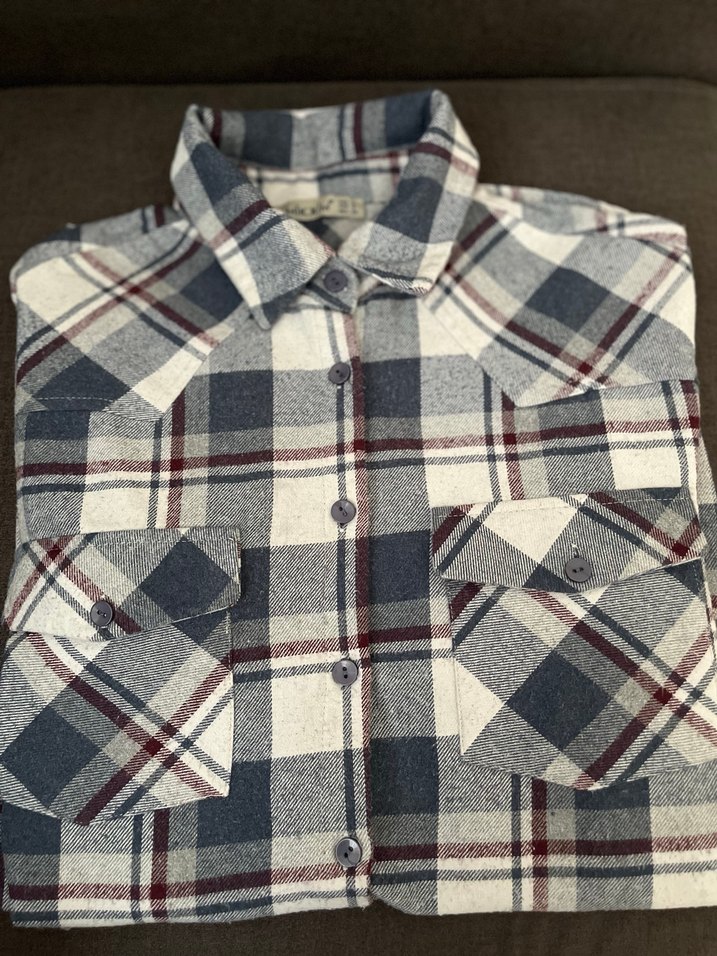 Mavi pamuklu, düğmeli, uzun kollu, yakalı ve rahat kesim kadın gömleği. Günlük kullanım için uygun, casual tarzda. 36 beden ama 44 bedene kadar rahat olur iki kol arası 54 55 cm boy uzunluğu 76 cm