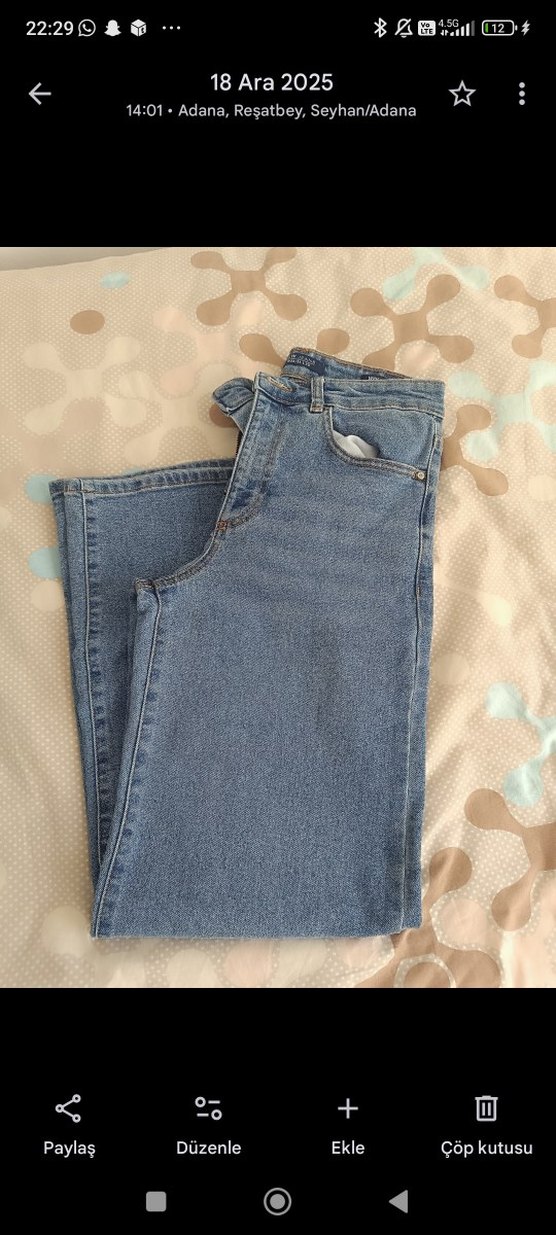 Düğmeli, mavi denim jean, günlük kullanım için normal boyda, rahat ve sokak stiline uygun.