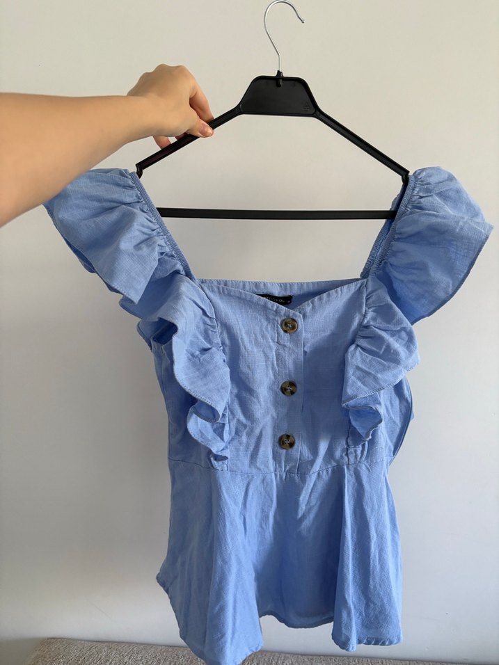 Yumuşak keten kumaştan, düğmeli ve fırfırlı kollu, Günlük sokak stiline uygun.Birkaç defa kullanıldı çok iyi durumda. Markayı bilerek zara yazdım öne çıksın diye. Markası trendyoldur