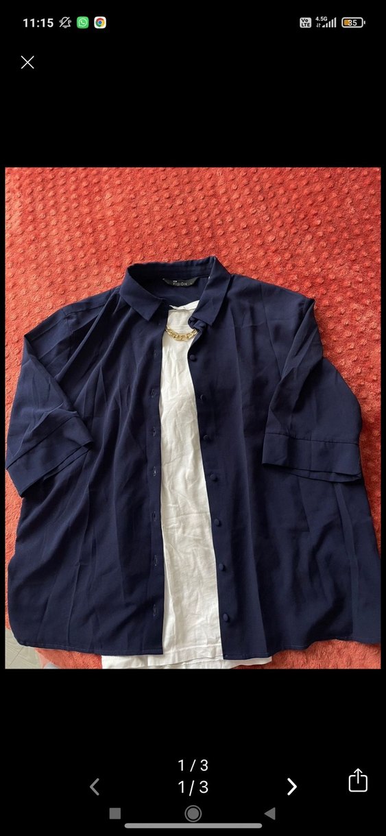 Düğmeli, yakalı ve kısa kollu mavi keten gömlek, rahat kesimiyle günlük kullanıma uygun. ✨