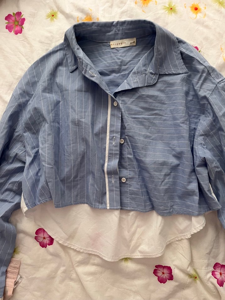Düğmeli Mavi Keten Gömlek