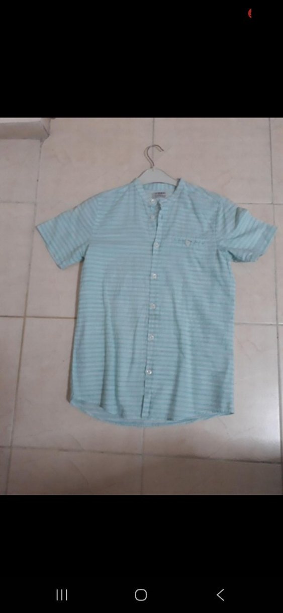 Düğmeli önü, kısa kollu ve yakalı bu çocuk gömlek, yumuşak keten kumaştan yapılmıştır. Pastel mavi renkte, rahat ve salaş kesimlidir.