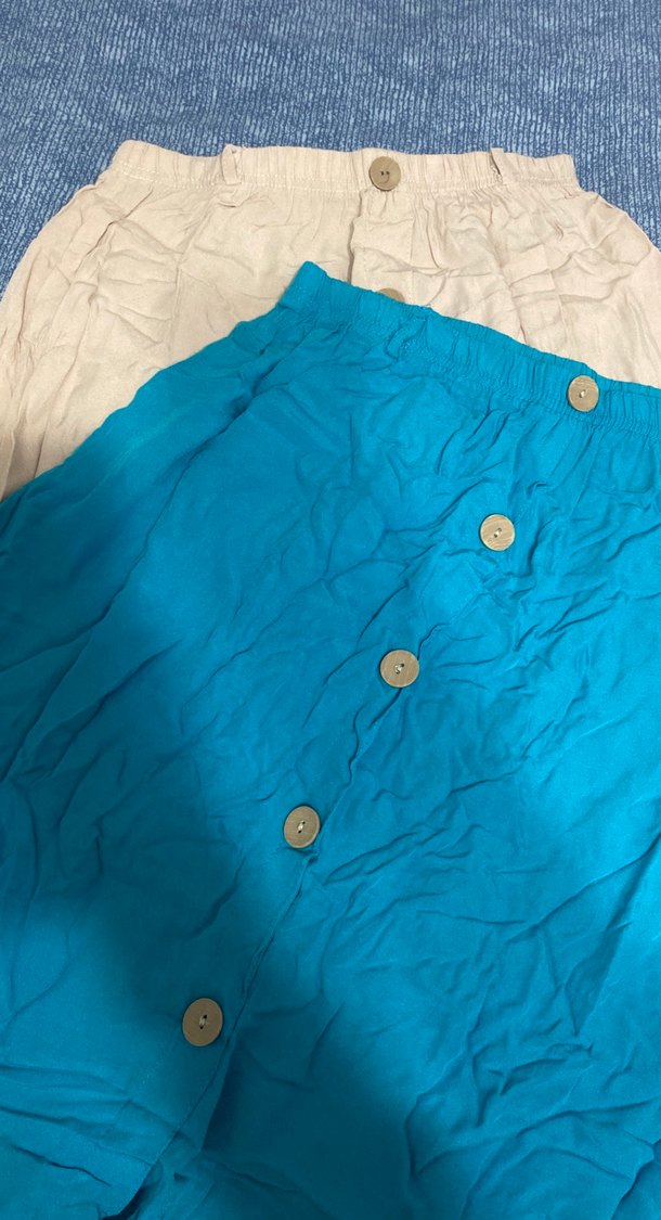 Düğmeli Mavi Keten Midi Etek