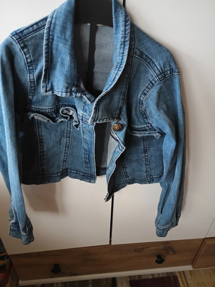 Düğmeli ve kısa kesim olan bu kadın kot ceket, yakasında kesik detay ve dar kesimle sokak stiline uygun. Mavi kot kumaş, askılı kollu ve desensiz tasarıma sahip. Günlük kullanıma uygundur.