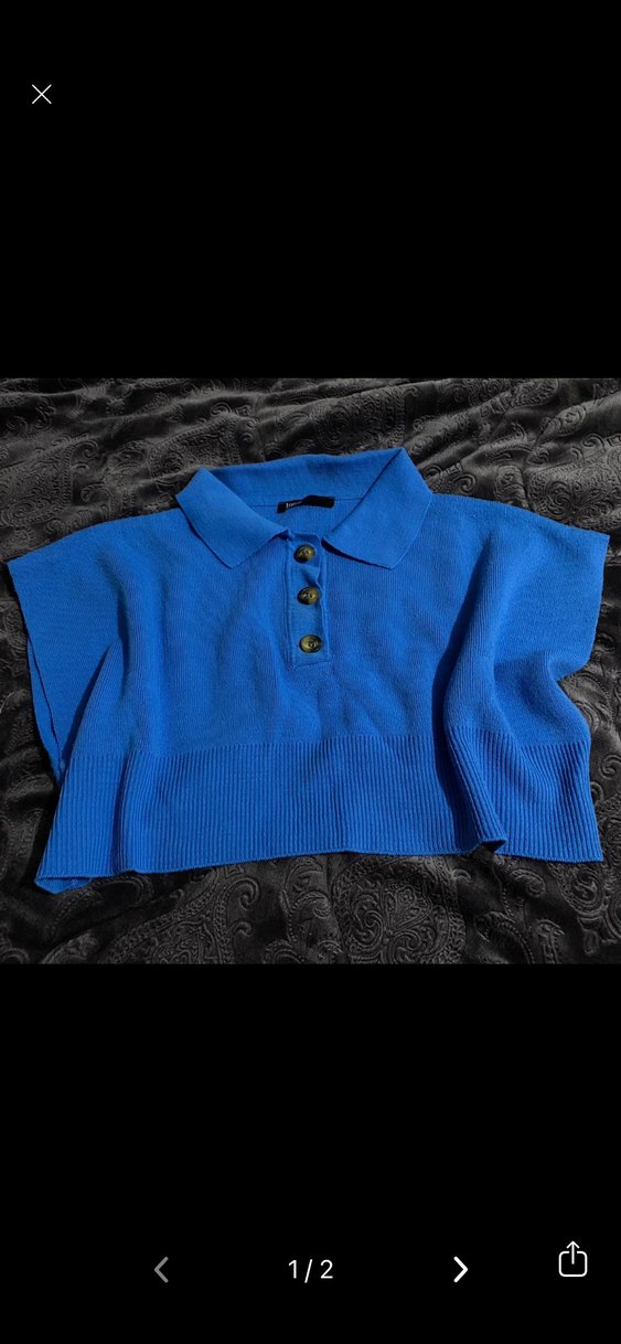 Düğmeli Mavi Kısa Kollu Kadın Kazak